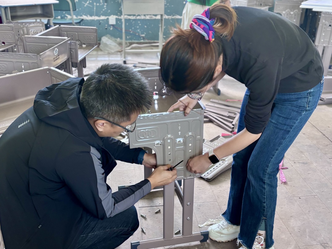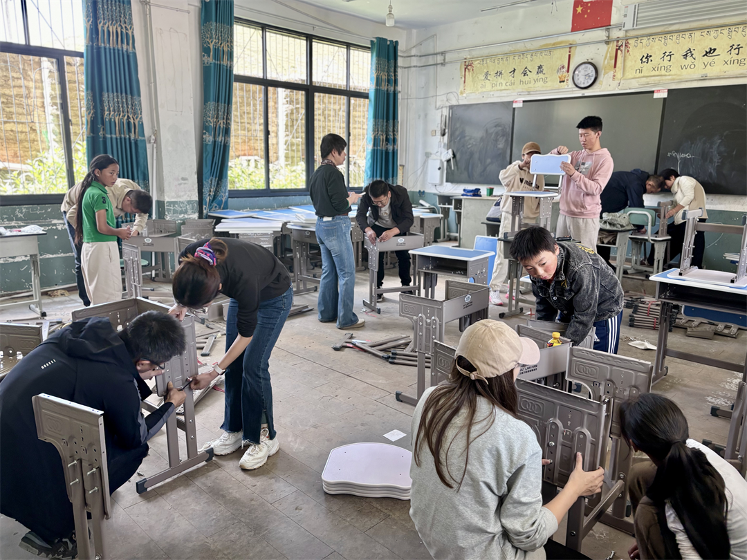 这一次,我们带来的不只是130套崭新的课桌椅,更是一份沉甸甸的承诺。在高原的阳光下,大家亲手将零件一一组装,每一次拧紧螺丝,都是在为梦想筑基;每一张安放好的书桌,都承载着我们最真诚的守望。