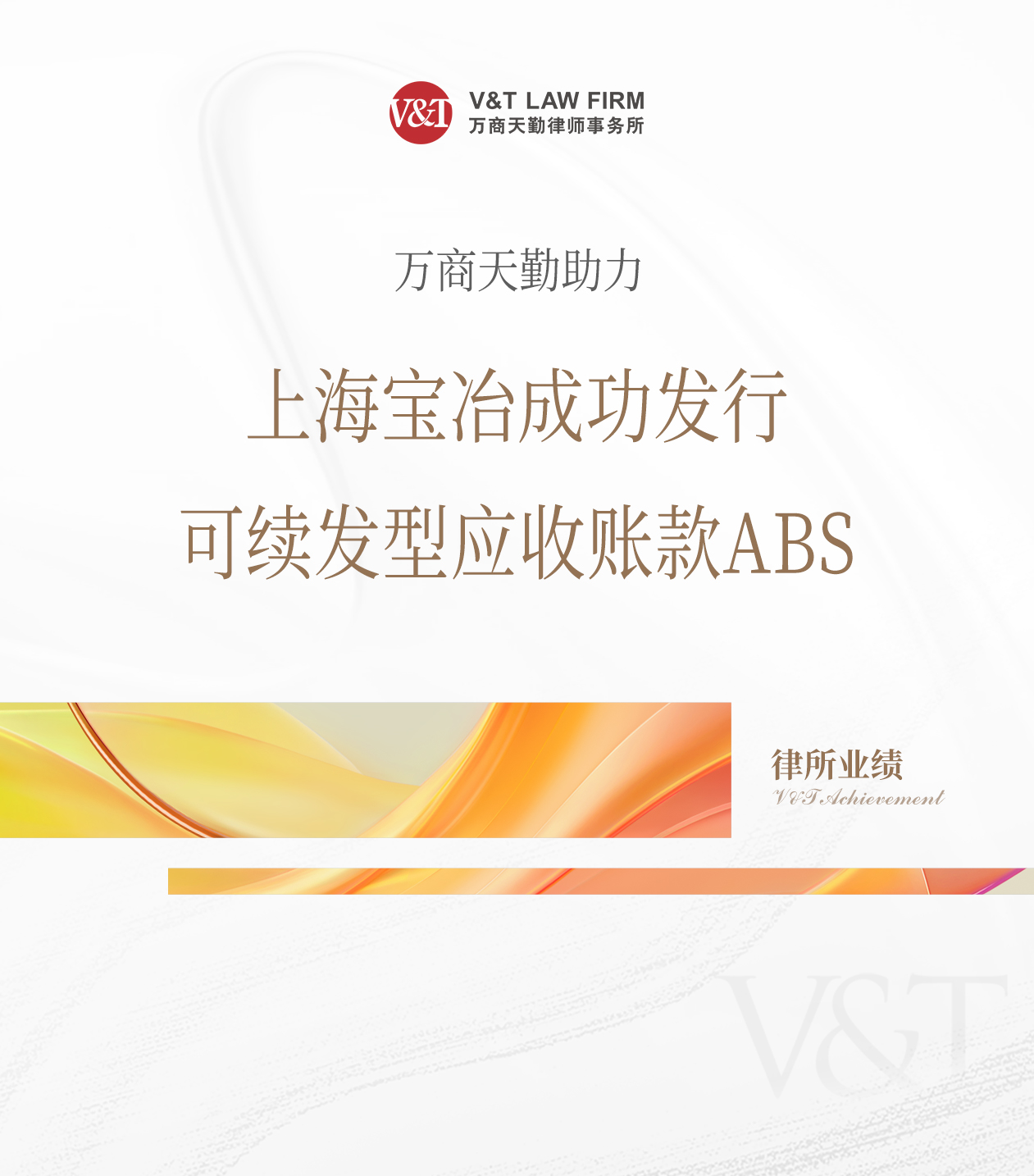 V&T 业绩|万商天勤助力上海宝冶成功发行可续发型应收账款ABS