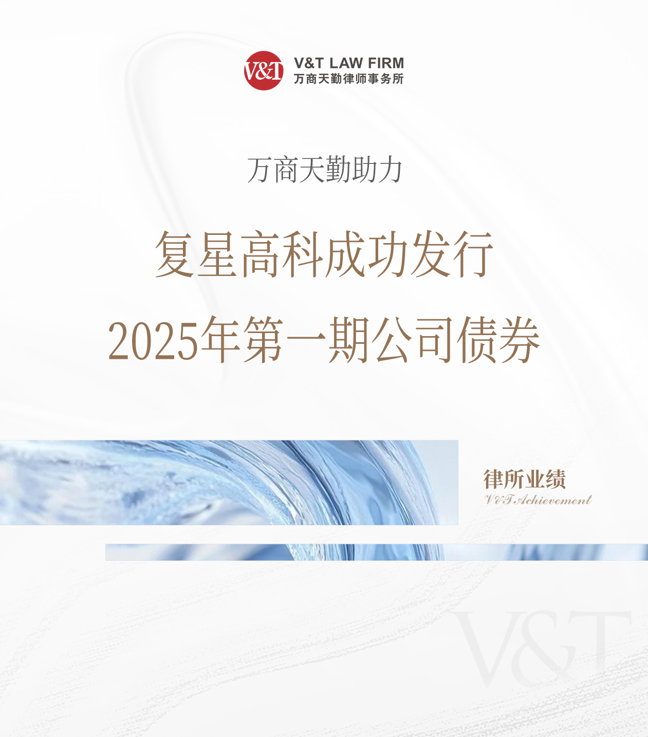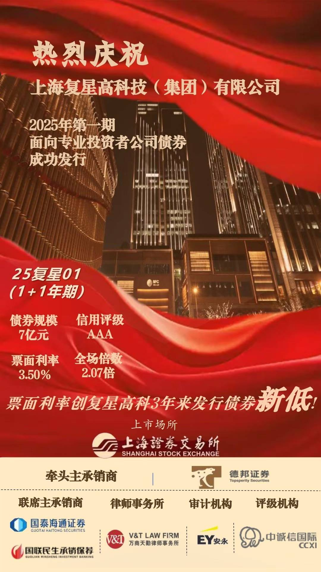 近日,万商天勤助力上海复星高科技(集团)有限公司(以下简称“复星高科”)在上海证券交易所成功发行2025年第一期面向专业投资者公司债券。本次公开发行公司债券总募集金额7亿元,证券期限为1+1年,发行利率3.50%,主体和本期债券信用评级均为AAA。此前,万商天勤已助力复星高科获得中国证监会同意其面向专业投资者公开发行公司债券注册的批复,获批额度为60亿元。本期发行为注册额度范围内的第一期发行。